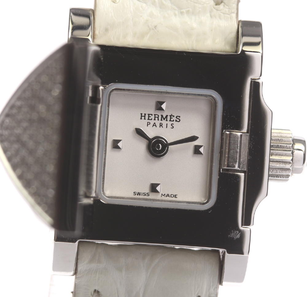★美品★箱・保【HERMES】エルメス ミニメドール ME2.130 ダイヤ QZ 純正革ベルト レディース【中古】