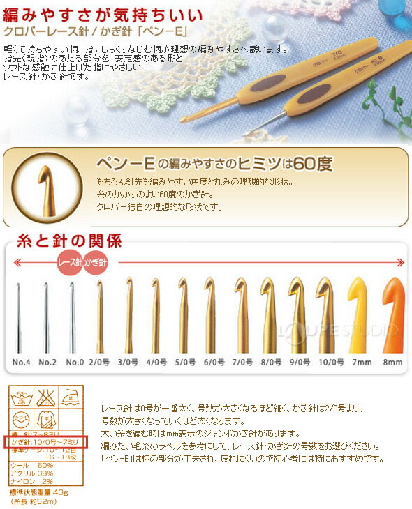 レース針ペンE No.0 41600 クロバー 商品番号:CLV-481価格:630(税別)持ちやすい安定感のある形状の柄です。