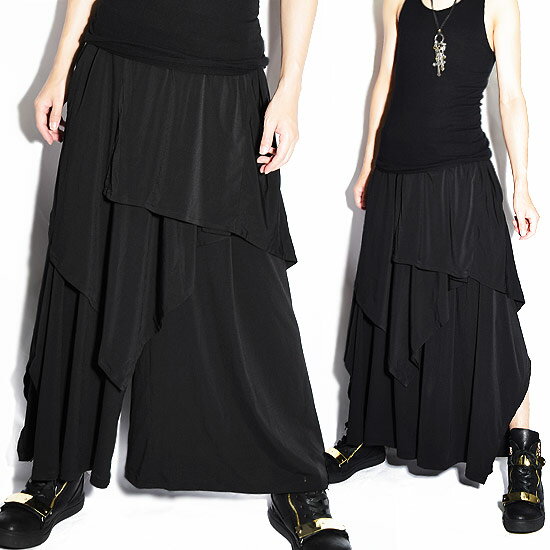 ガウチョパンツ メンズ ドレープパンツ 袴パンツ スカンツ メンズファッション ワイドパンツ ブラック 黒 Alleglo オリジナル 個性的 V系 ビジュアル系 お兄系 サロン系 モード系ファッション B系 ホスト 2017 秋 冬 新作 衣装